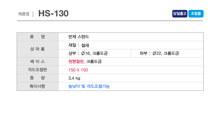 »óǰ¸í : HS-130 °íÁ¤ÆÇ : 130x130 º£À̽º : Å©·Ò¿øÇü(¥Õ300) ¹ÝÁ¦½ºÅÙµå ¾È³»ÆÇÁ¦ÀÛ ÄÚ»çÀμ¥ »çÀÎÅ×Å©